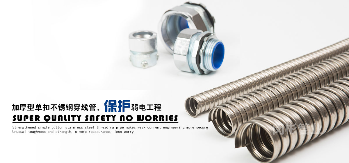 除此之外,公司還致力于金屬軟管接頭,普利卡管,普利卡接頭,不銹鋼穿線管的銷售。公司本著品種多、質(zhì)量優(yōu)、服務(wù)好的宗旨,不斷開發(fā)、創(chuàng)新產(chǎn)品,以滿足日益發(fā)展的市場需要。產(chǎn)品主要包括:金屬軟管接頭 ,橋架接頭,塑料軟管接頭,AD接頭,不銹鋼接頭,普利卡接頭,包塑金屬軟管,不銹鋼軟管,不銹鋼編織軟管,普利卡軟管,尼龍軟管,塑料波紋管,尼龍拖鏈等機床配件。產(chǎn)品廣泛應(yīng)用于建筑、機床、鐵路、車輛、化工、汽車、監(jiān)控、建筑裝修、建筑裝飾、建材、裝修裝飾等行業(yè)。上海閔彬管業(yè)有限公司高質(zhì)量包塑管在實際使用中多家工程單位的認可、使用與推廣。